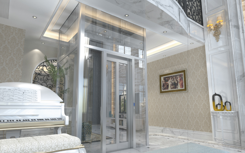 別墅電梯設計簡約、典雅時尚,具有寧靜的特質(zhì)。并以靈活的空間配置,人性化的體貼設計盡情彰顯尊貴人生。
